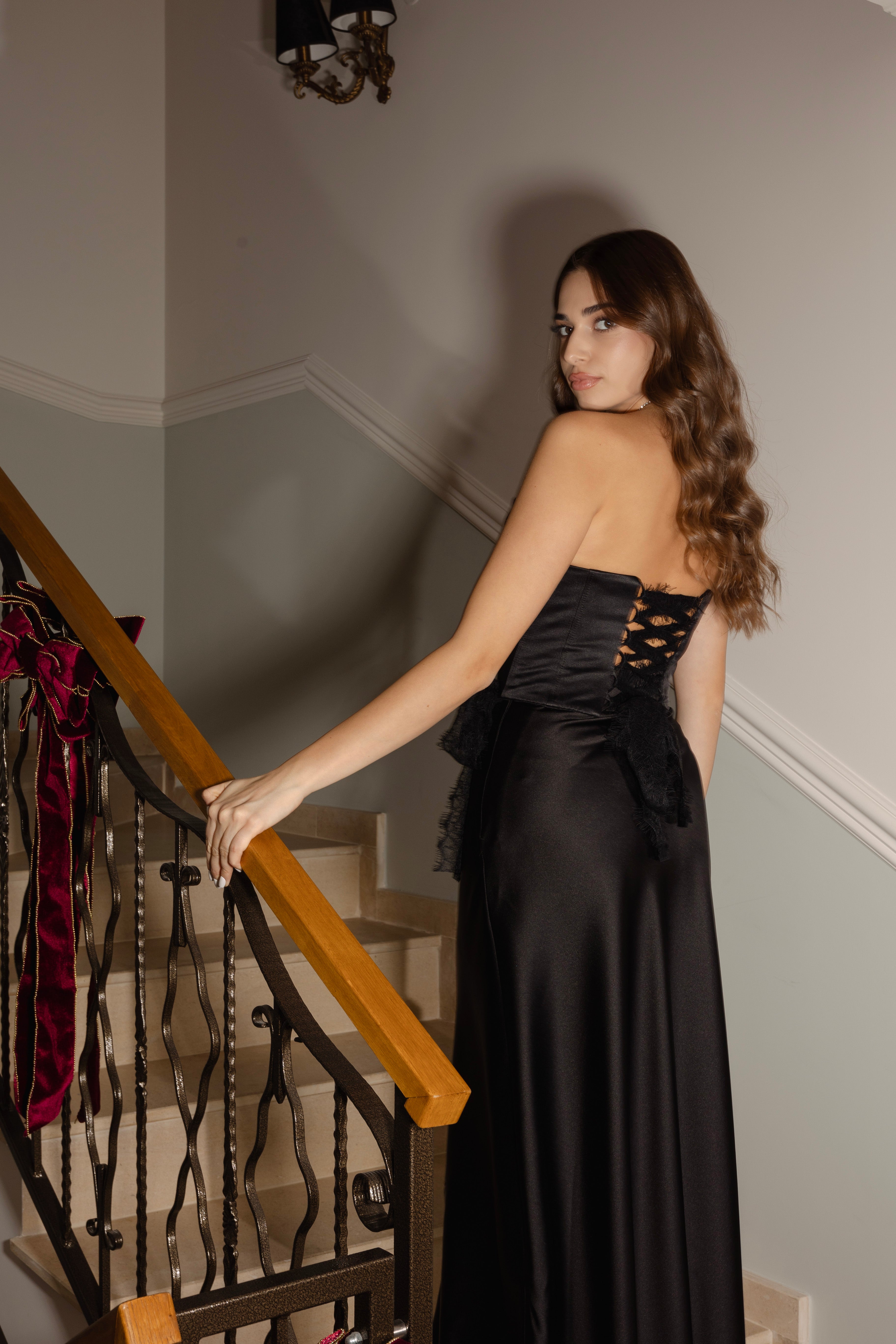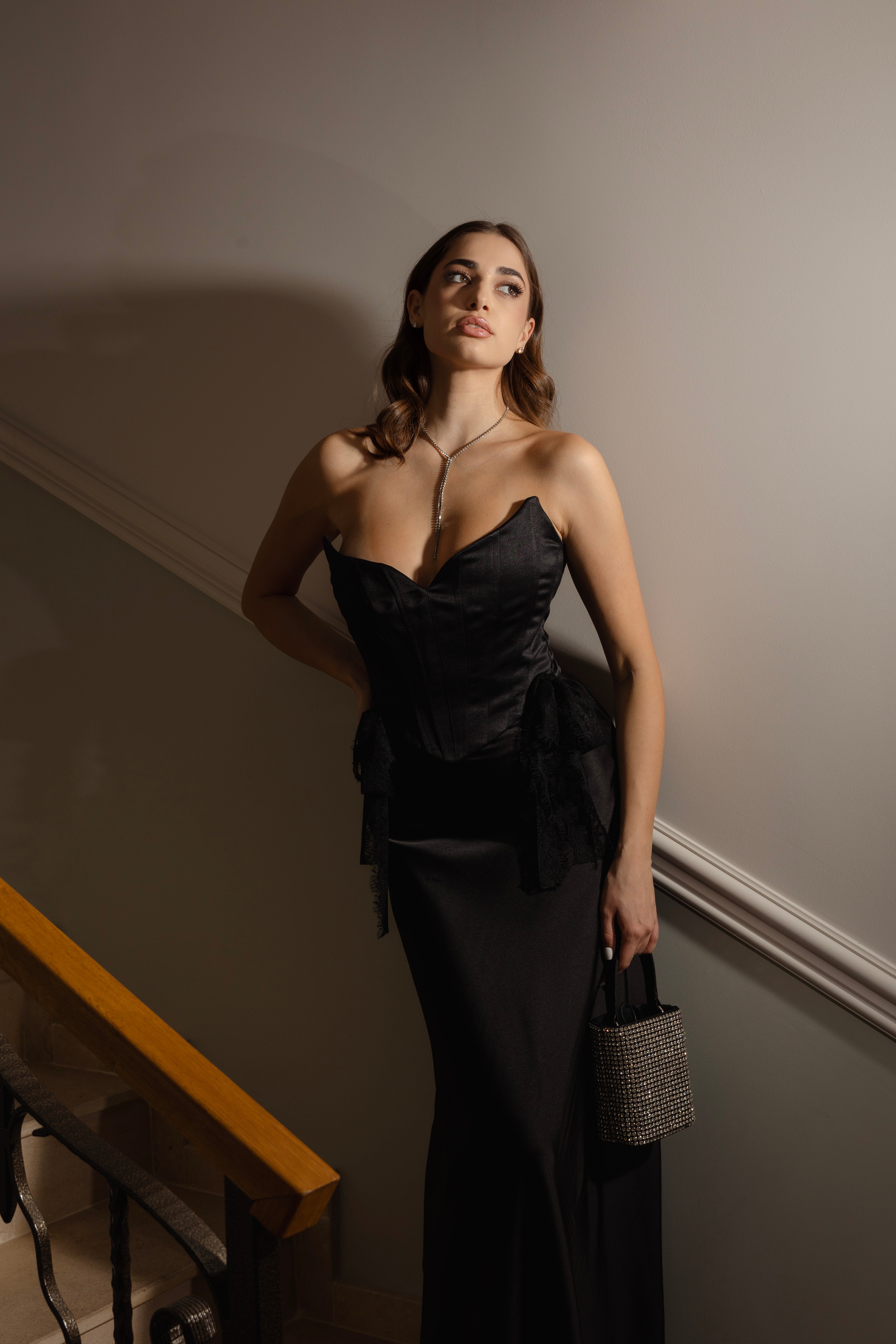 Cat-Inspired Black Corset – Taffeta with Side Bows