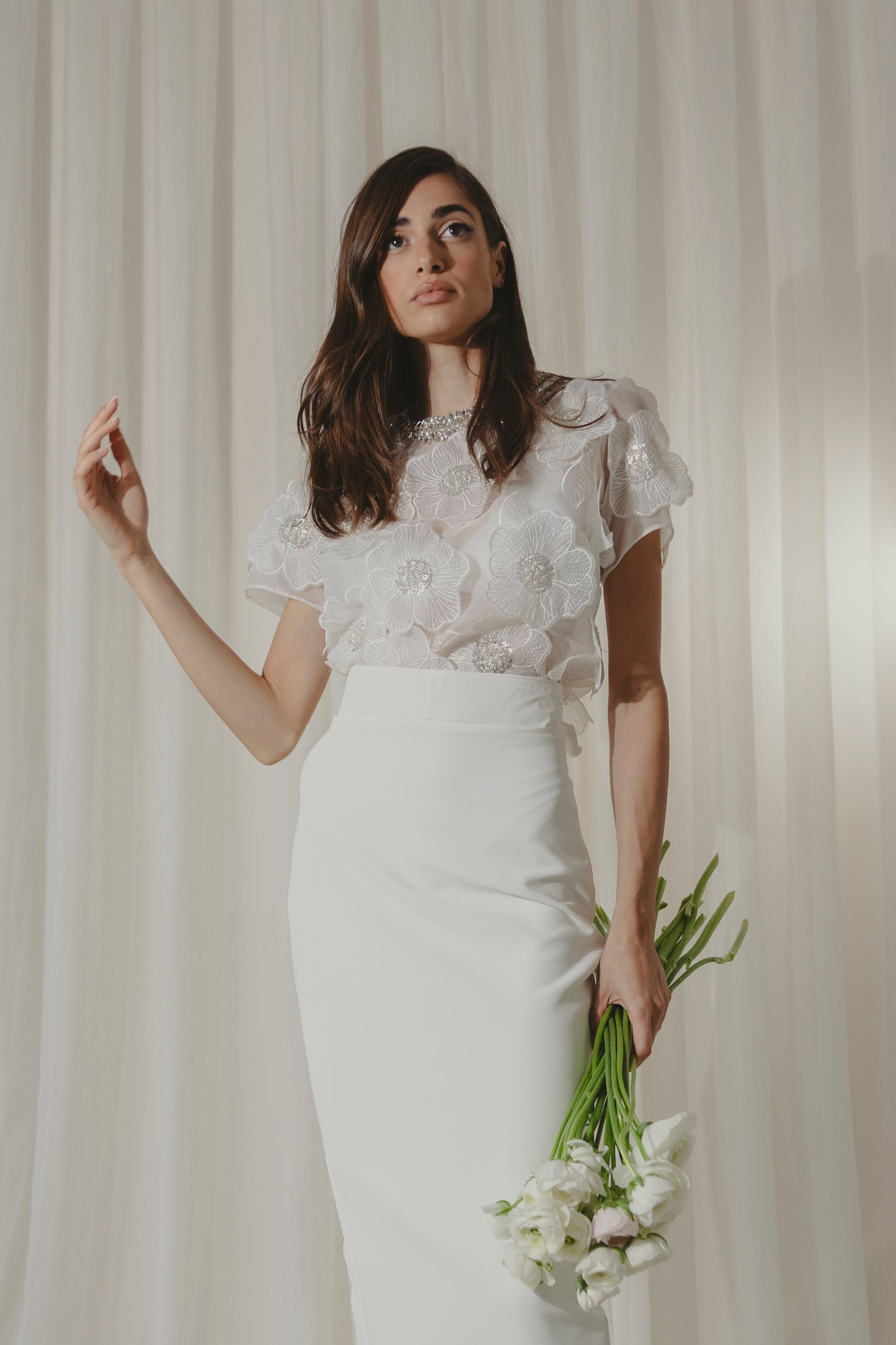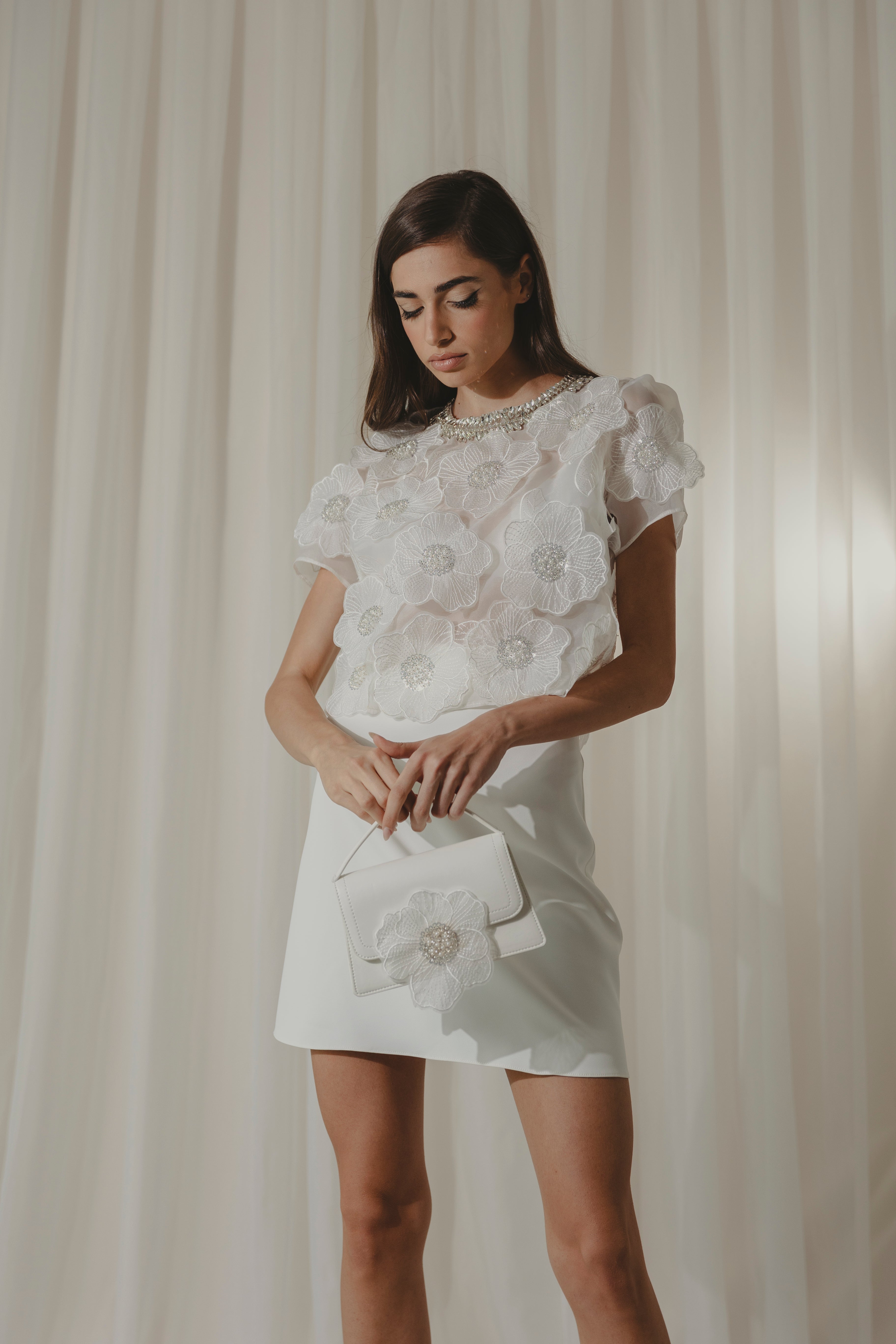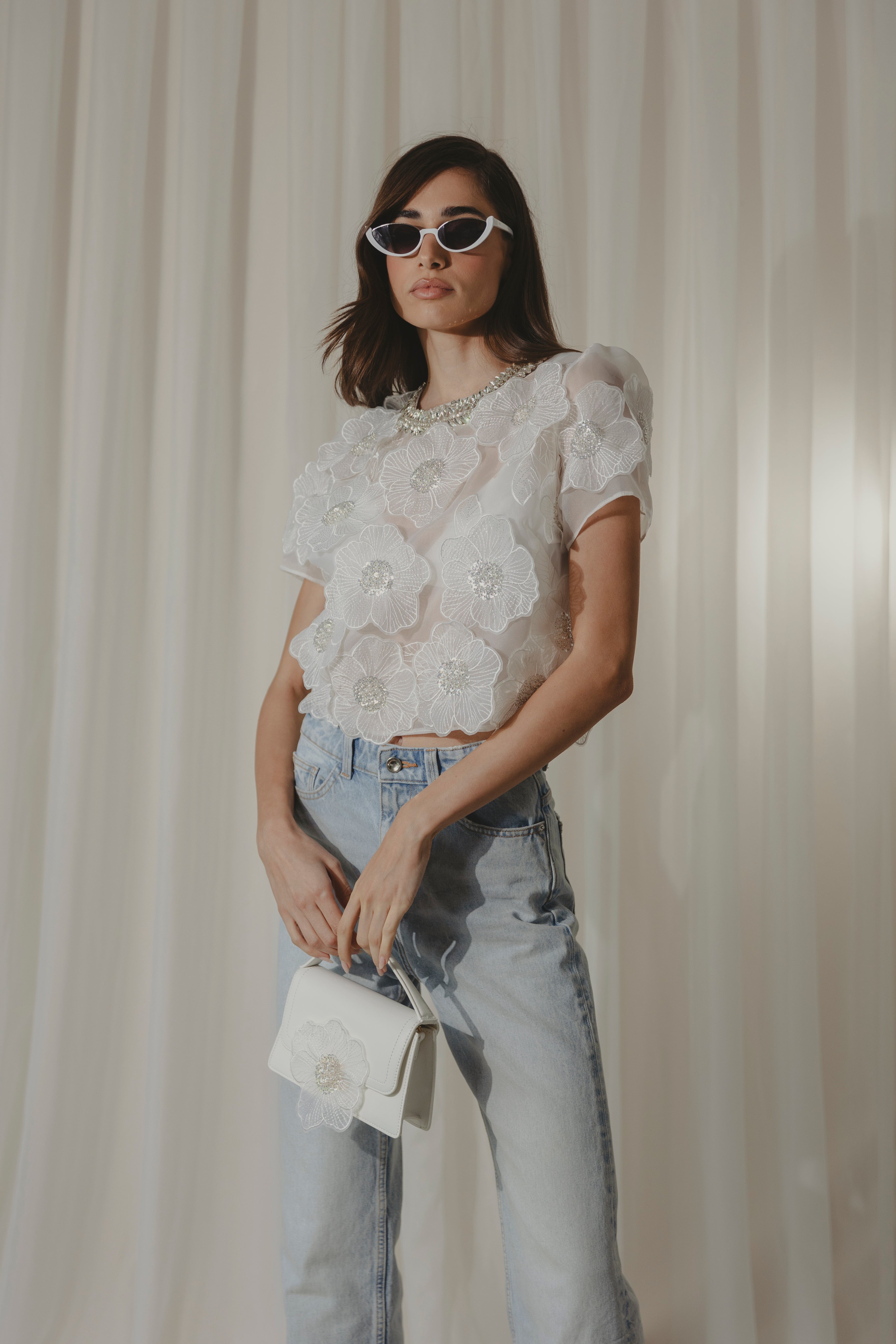 Lola White Organza Top with Hand-Applied 3D Flowers
