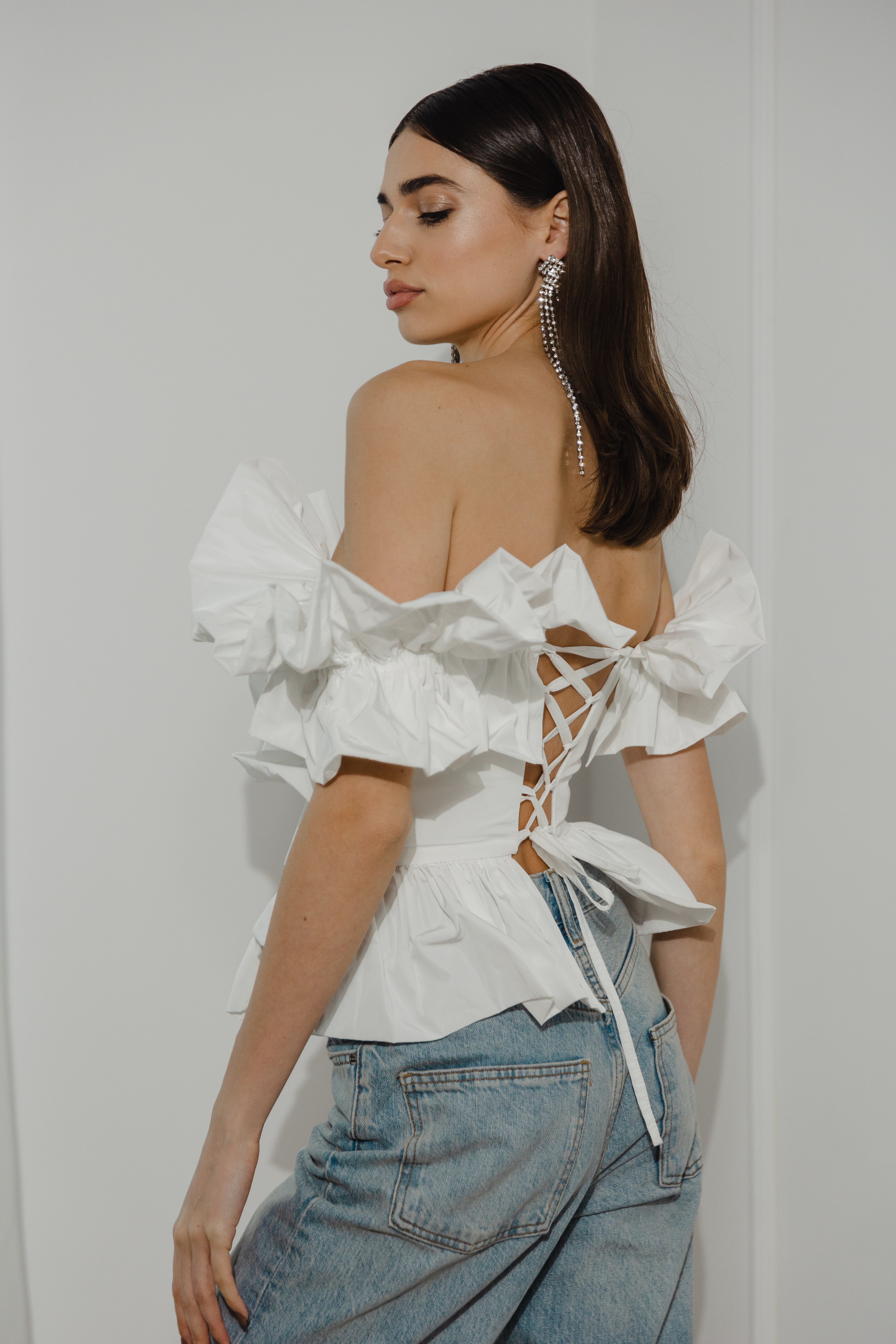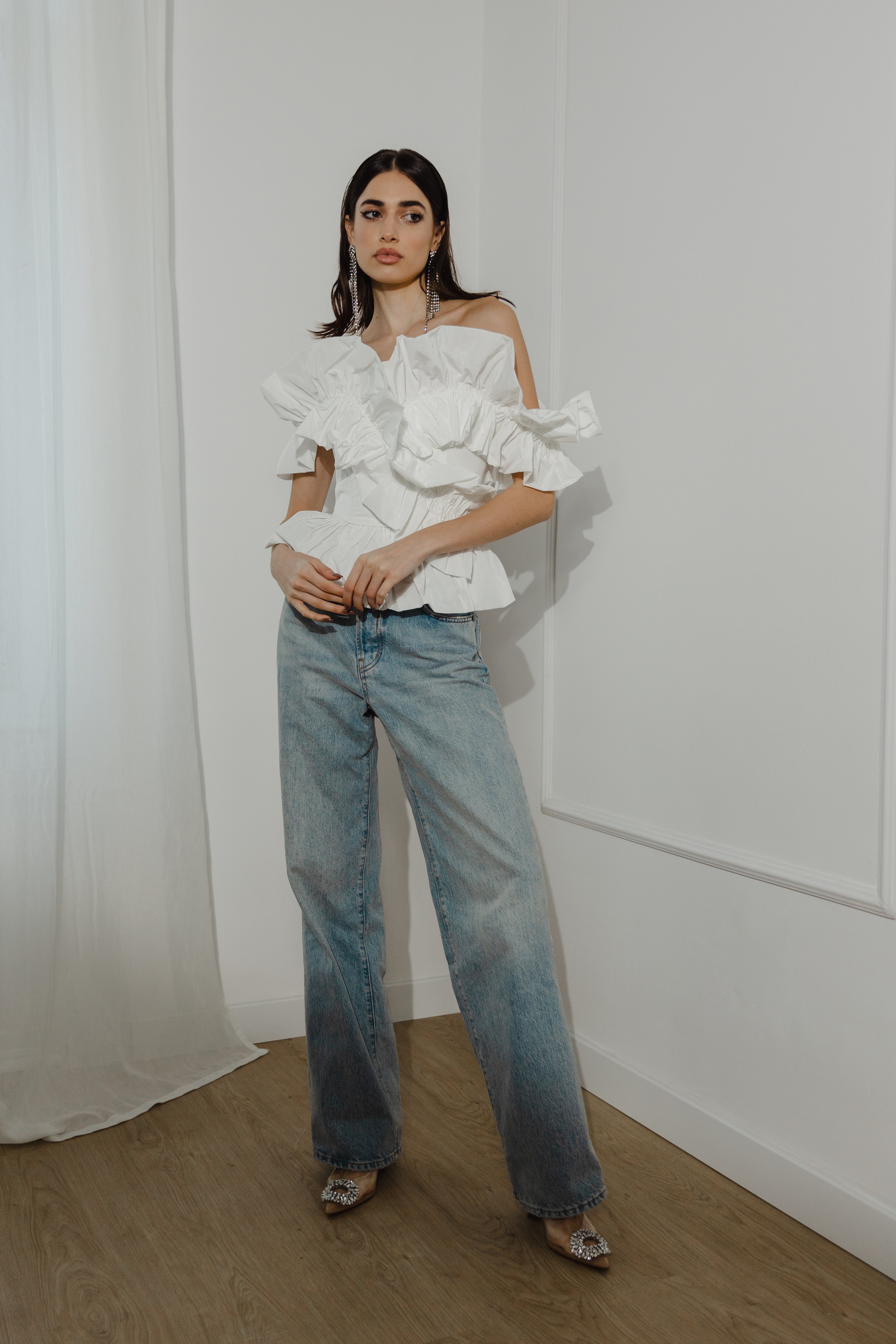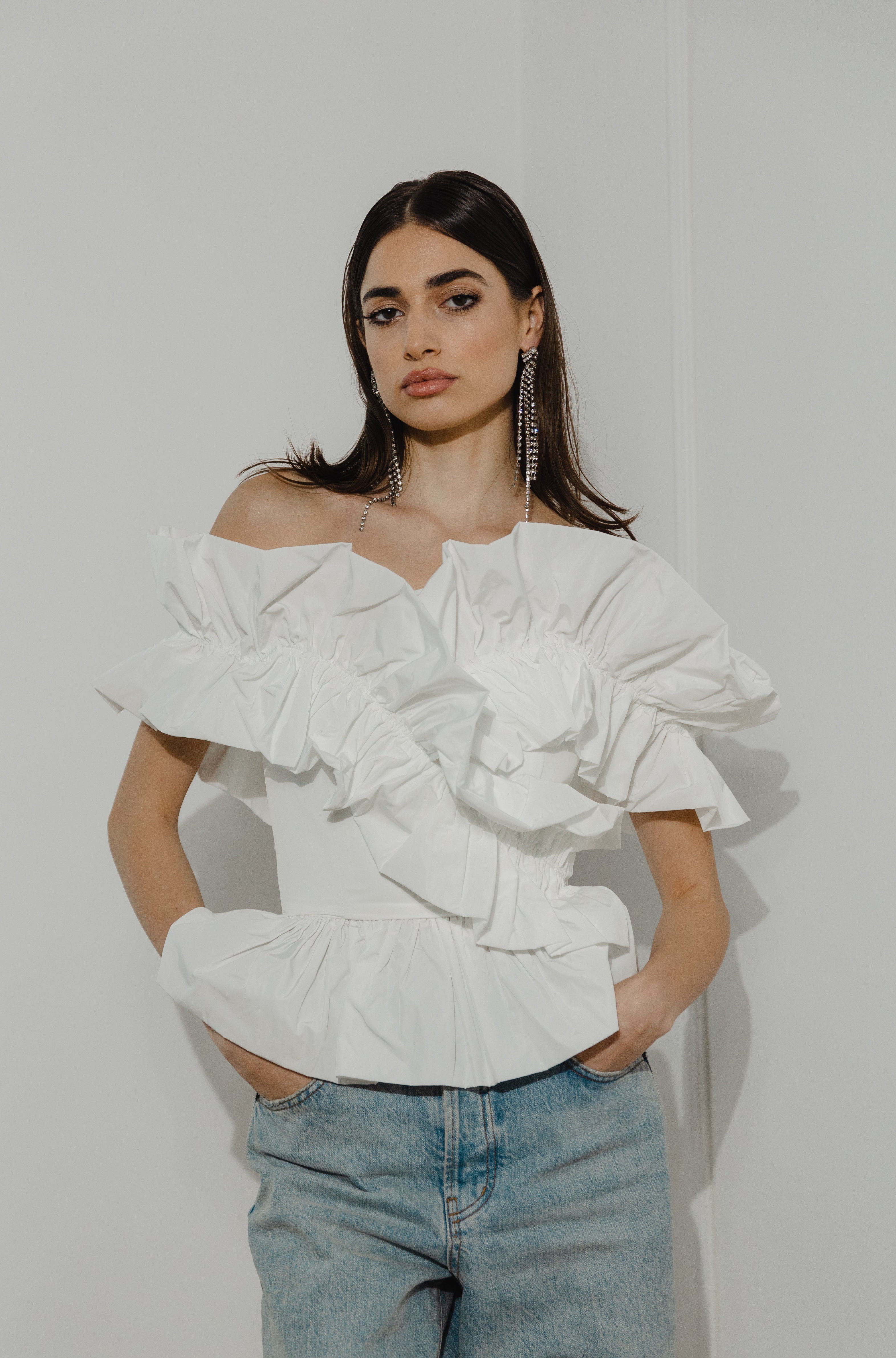 Lola White Organza Top with Hand-Applied 3D Flowers